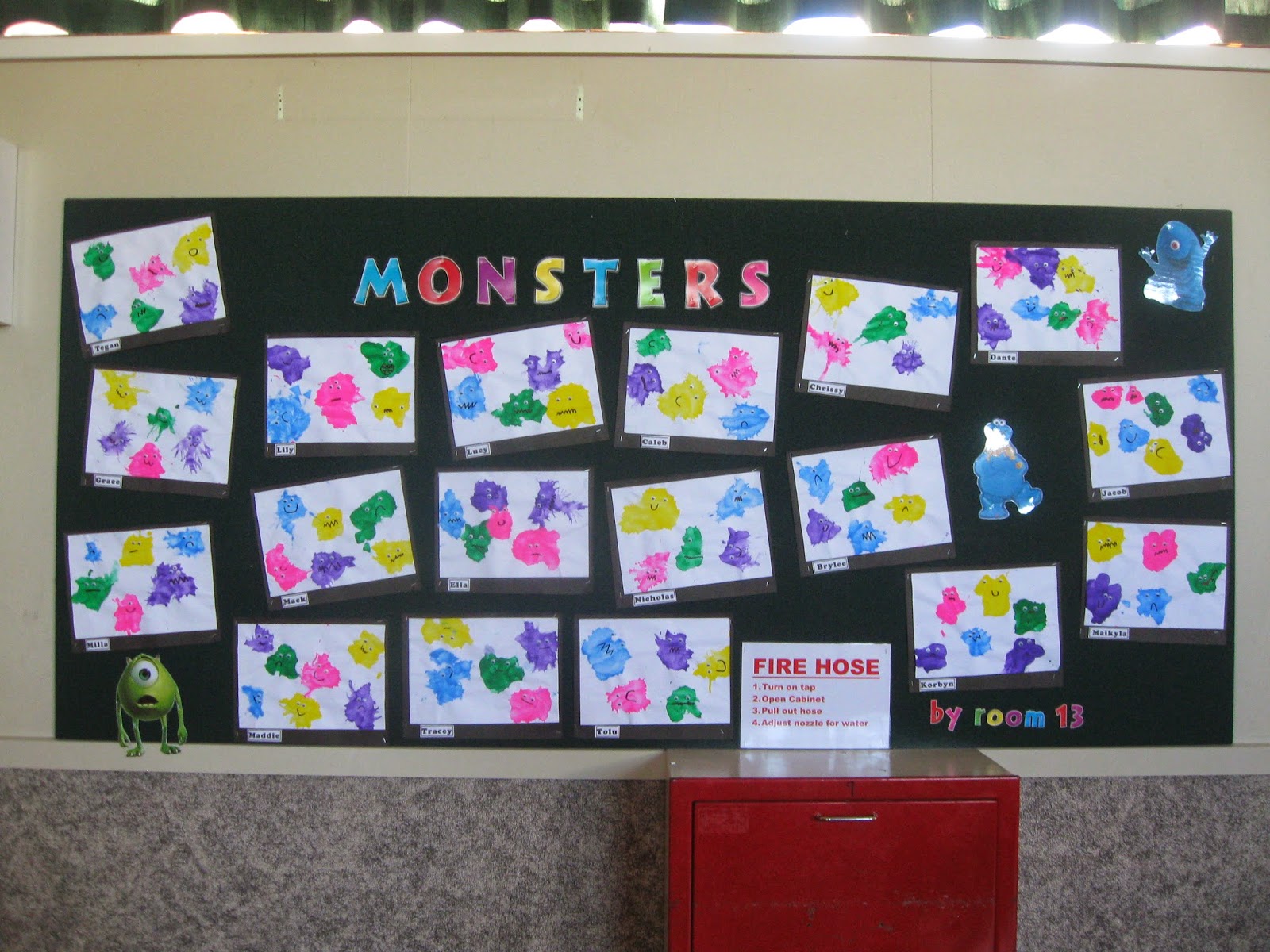 We have been doing some art work to display in the Hall. We made monsters by putting drops of paint on our page then using a straw to blow the paint in different directions. After our shapes had dried we added eyes and a mouth.